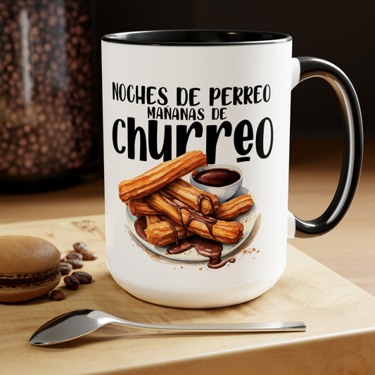 Churros - Taza para café, té o chocolate / Tazas de café bicolor, 15 oz